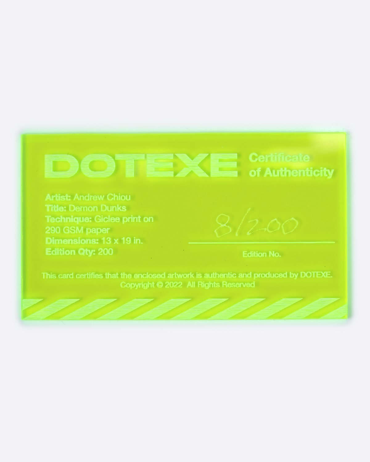 - Each print comes signed by Andu C with a numbered DOTEXE Certificate of Authenticity