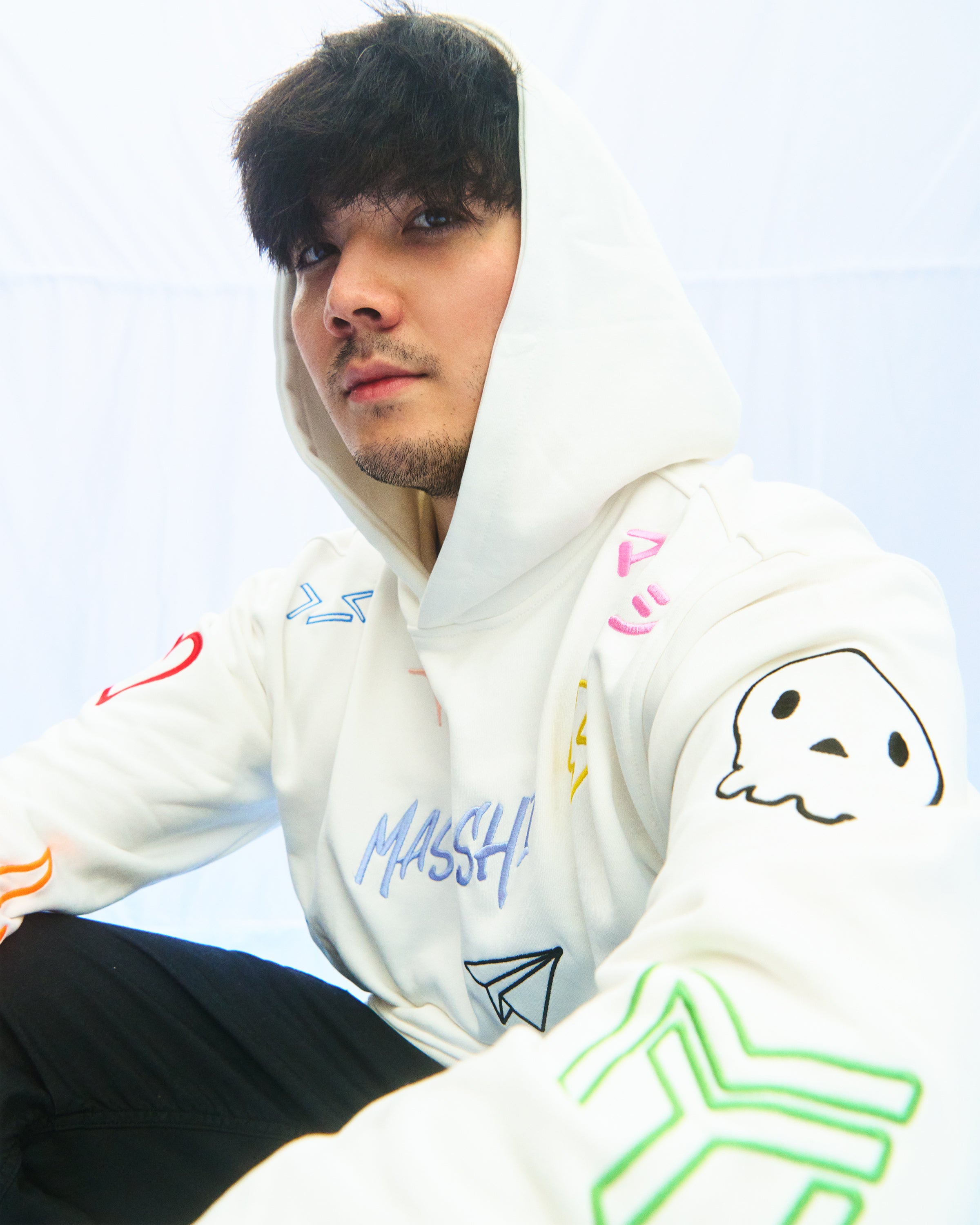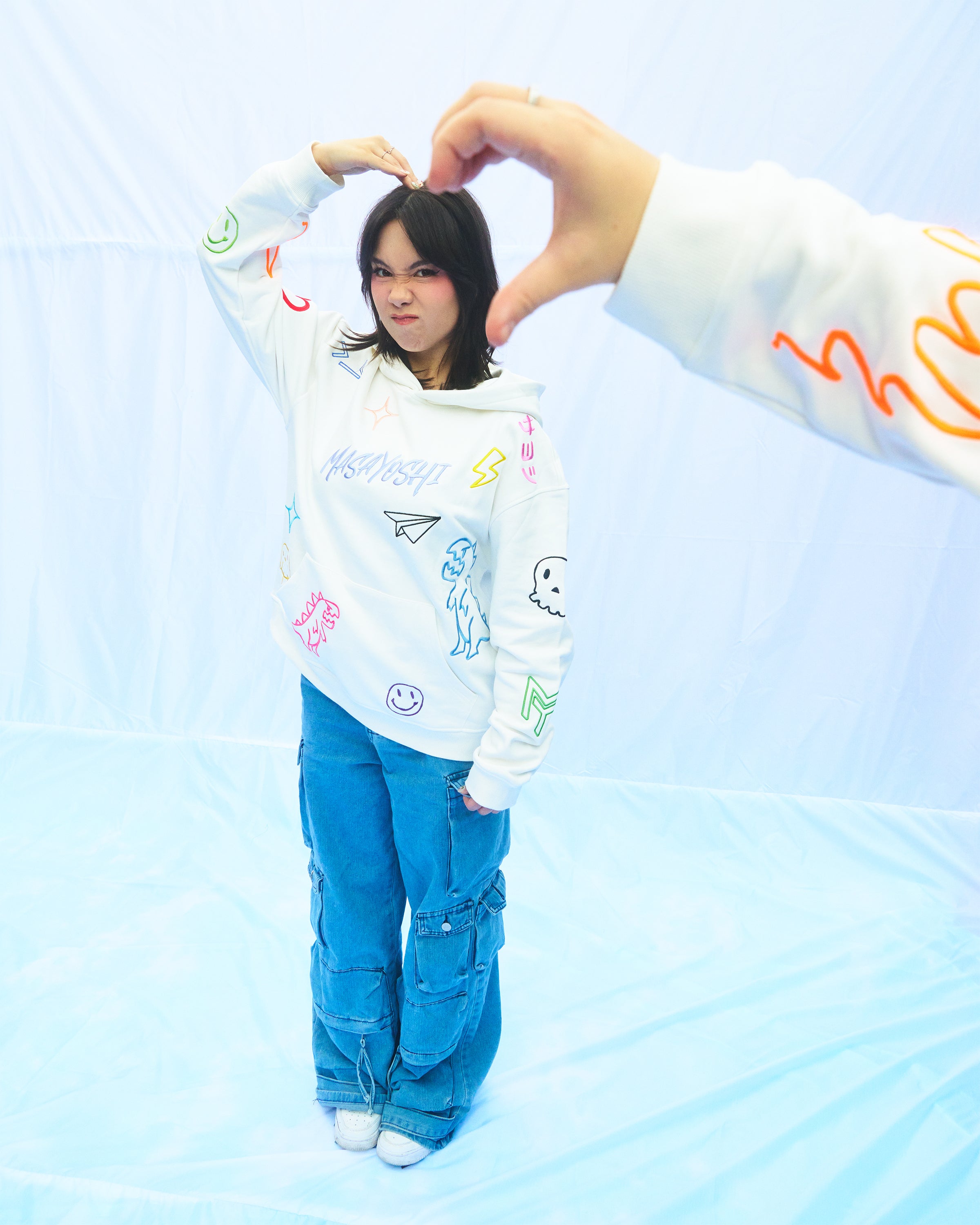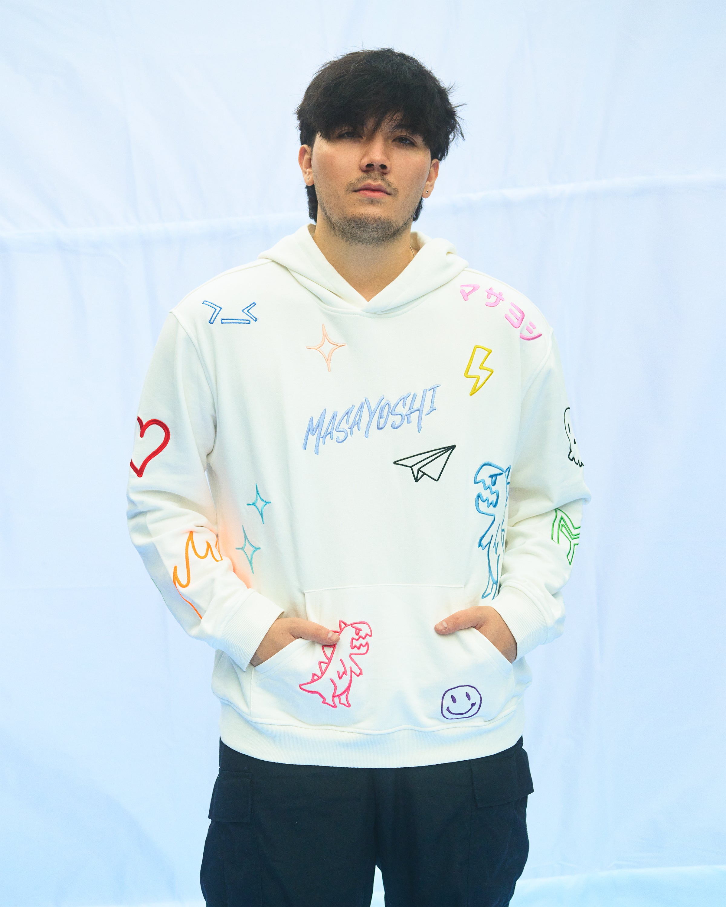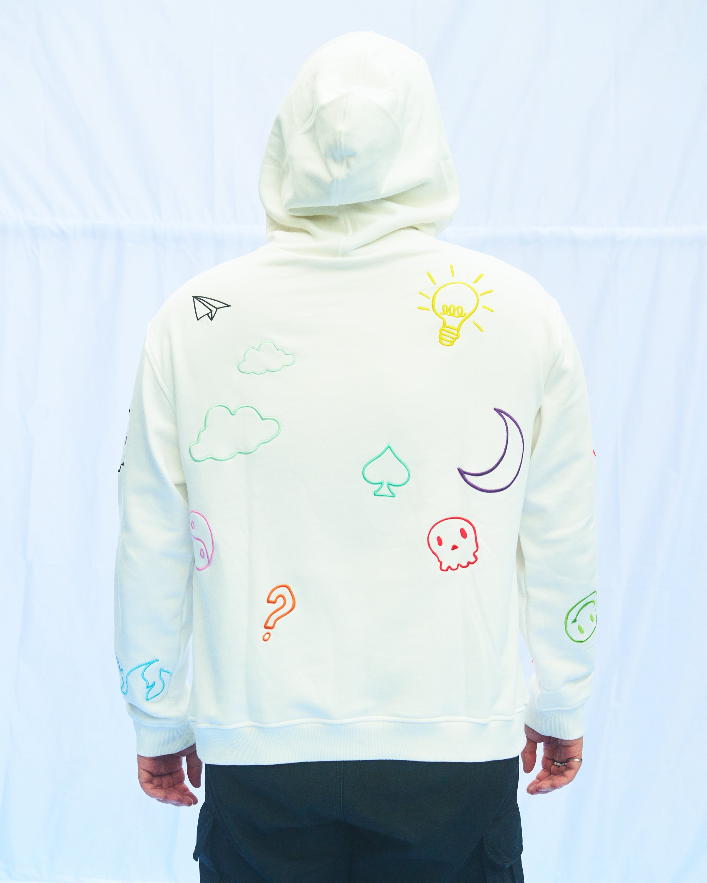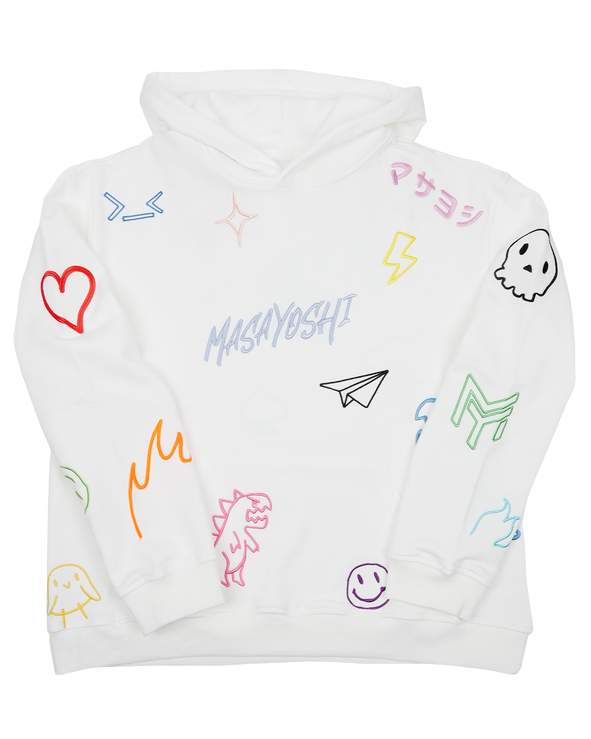 Introducing Masayoshi's Doodlez Pullover in white from the Light Mode Collection. Featuring over 25 unique embroidery doodlez on a custom silhouette!