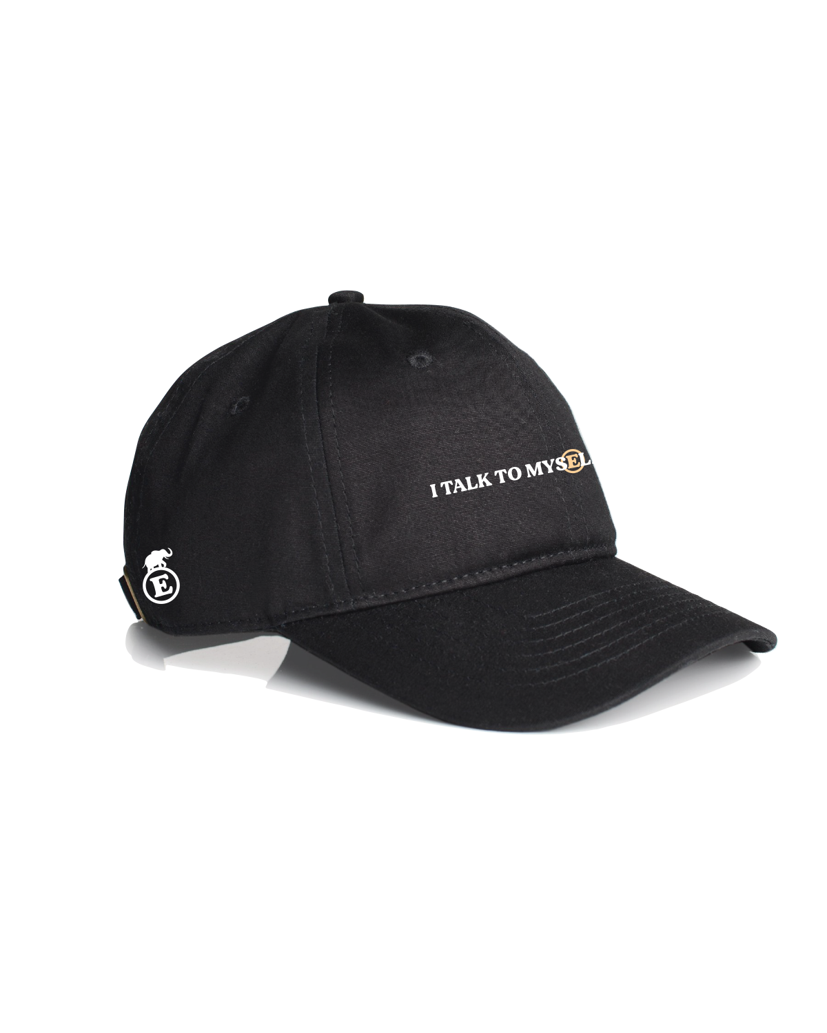 The Elspeth Dad Hat features a cotton body, black visor, black under bill, woven eyelets, and an adjustable closure. The cap is detailed with "what everyone thinks of you," embroidered across the front panel.