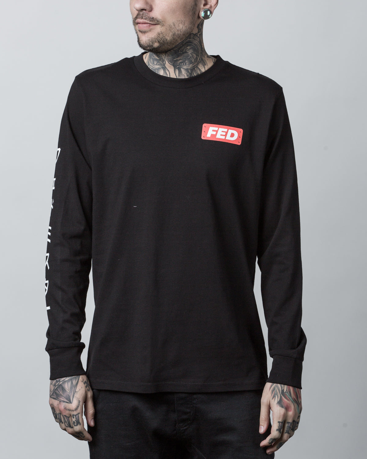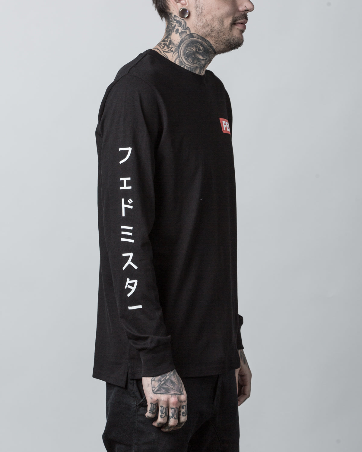 Cut/sew, cotton, long sleeve tee with silk screen detailing on left chest and sleeve.