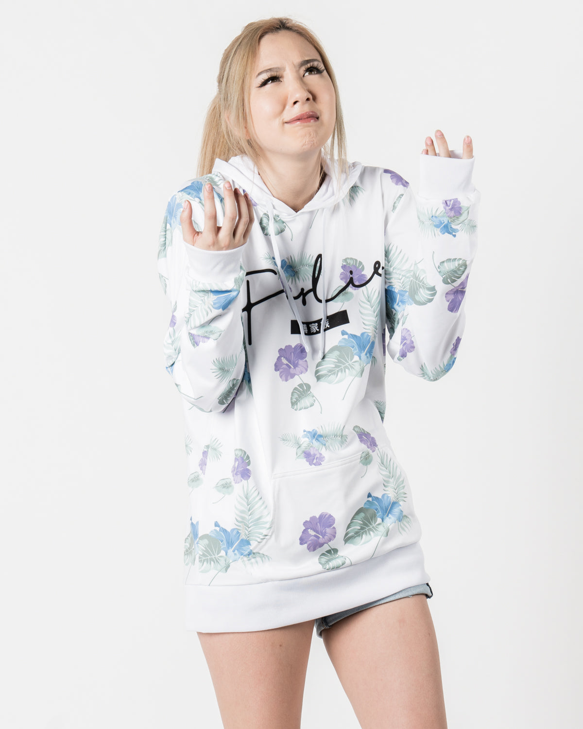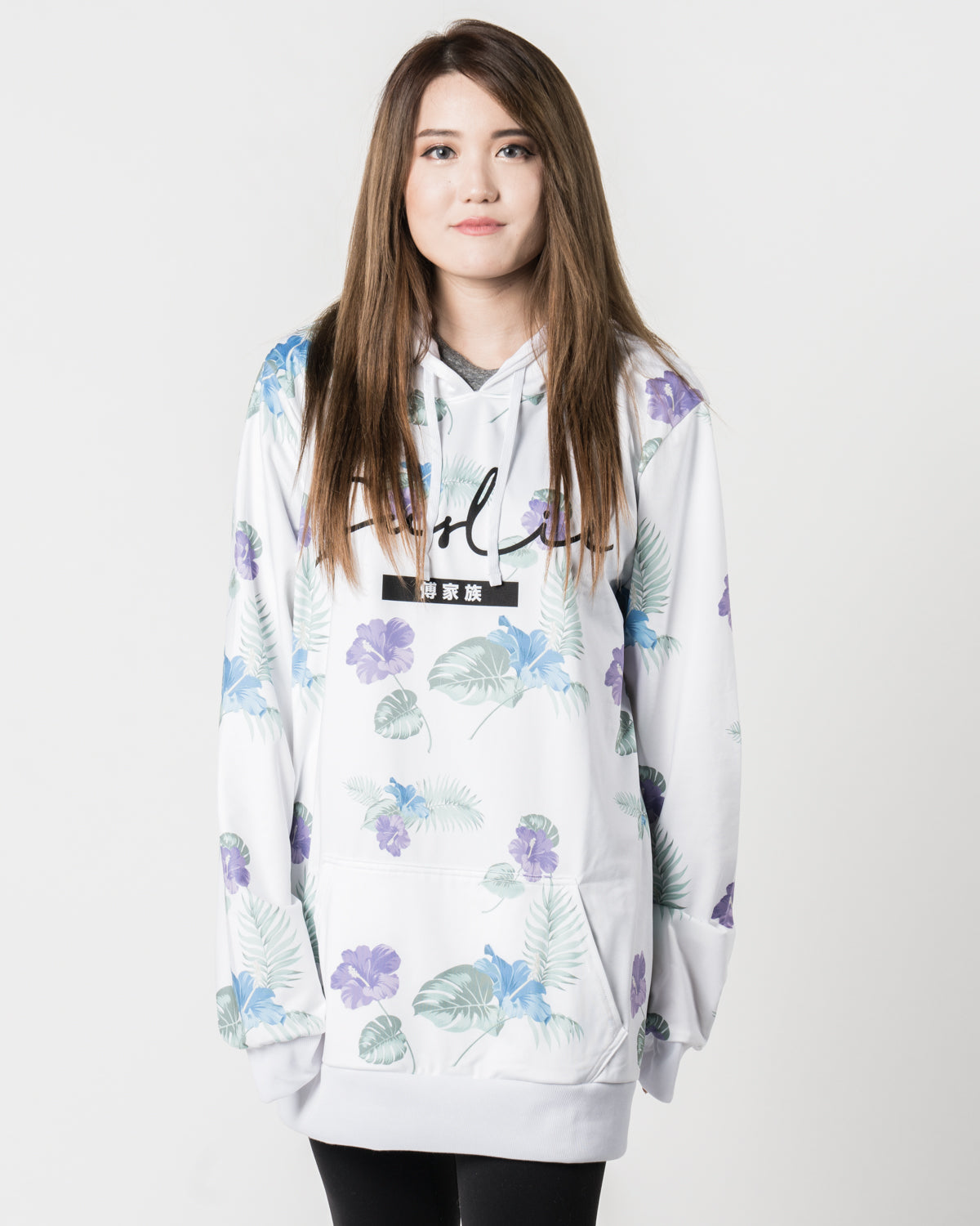 The Fuslie White Floral Hoodie features full coverage graphics on our premium, soft-to-touch fabric. Comprised of 100% Polyester, this hoodie provides the perfect blend of warmth and comfort.