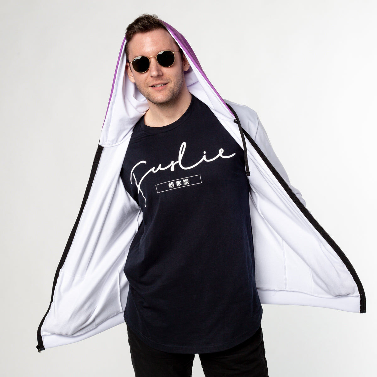 Introducing the Official Fuslie White Pogger Zip-Up Hoodie. The Fuslie White Pogger Zip Hoodies are designed and manufactured for Poggers in the United States.