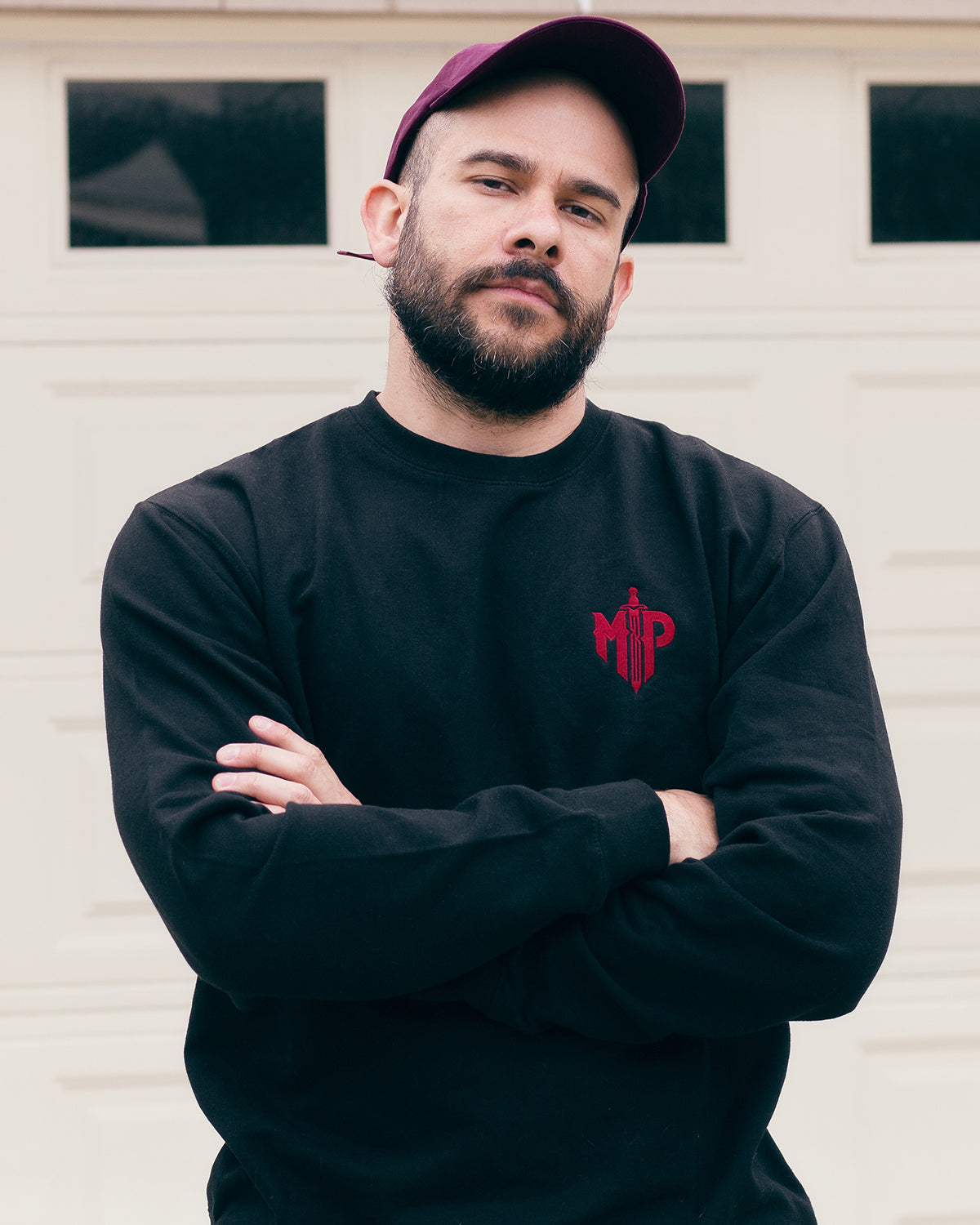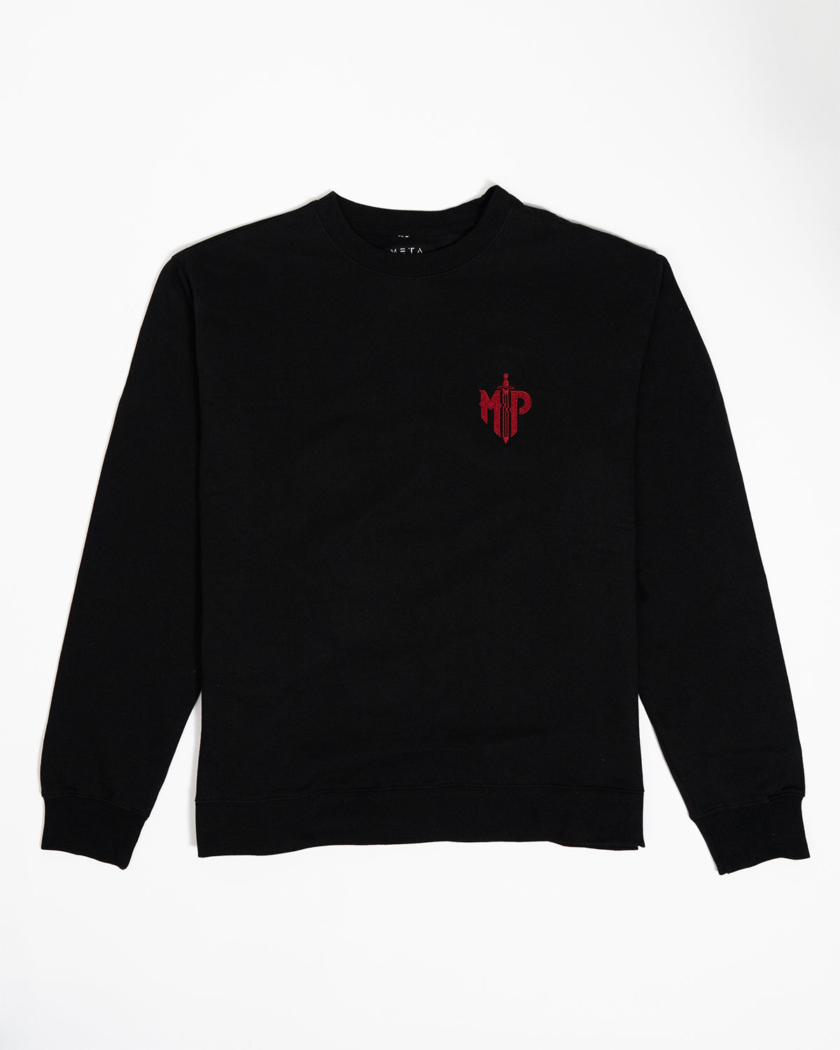 Muscle Party has you covered with our minimalist crew neck sweatshirt featuring the Muscle Party sword logo embroidered in maroon across the front (it matches our Dad Hat!). Now you can be cozy while still advertising the occasional desire to be impaled by a Dark Souls boss.