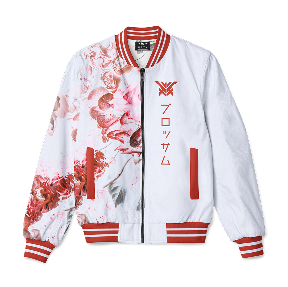 Introducing the DOTEXE n00blet Blossom Bomber Jacket. The n00blet Bomber Jacket features a comfortable, slim-fit, Polyester jacket body with custom sublimated graphics throughout the jacket.. The n00blet bomber is lightweight, windproof, And water resistant.